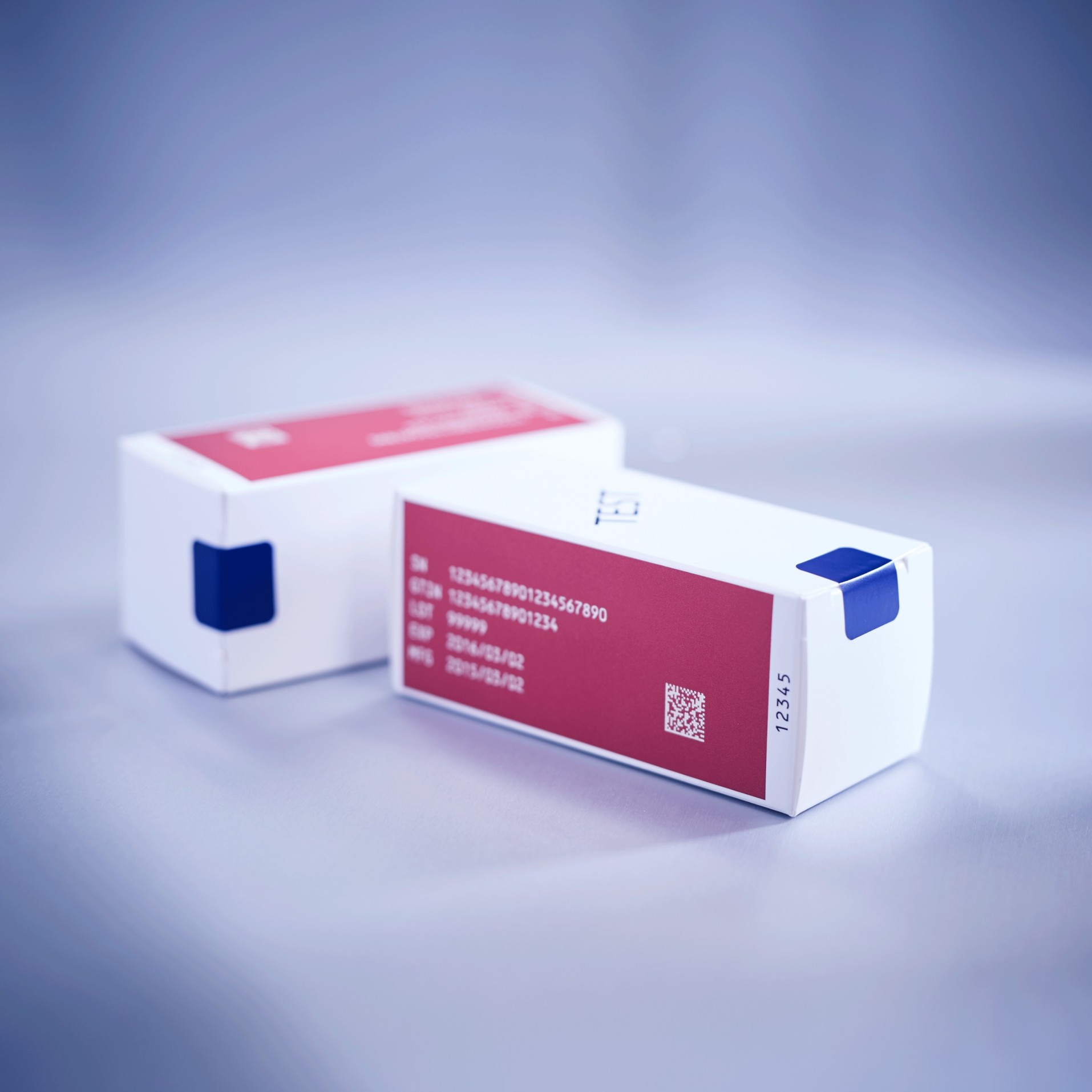 Fälschungssichere Versiegelung von Faltschachteln gemäß der Fälschungsschutzrichtlinie für Arzneimittel 2011/62/EU.